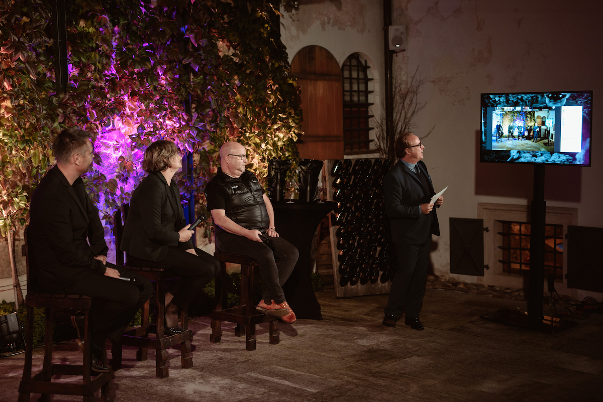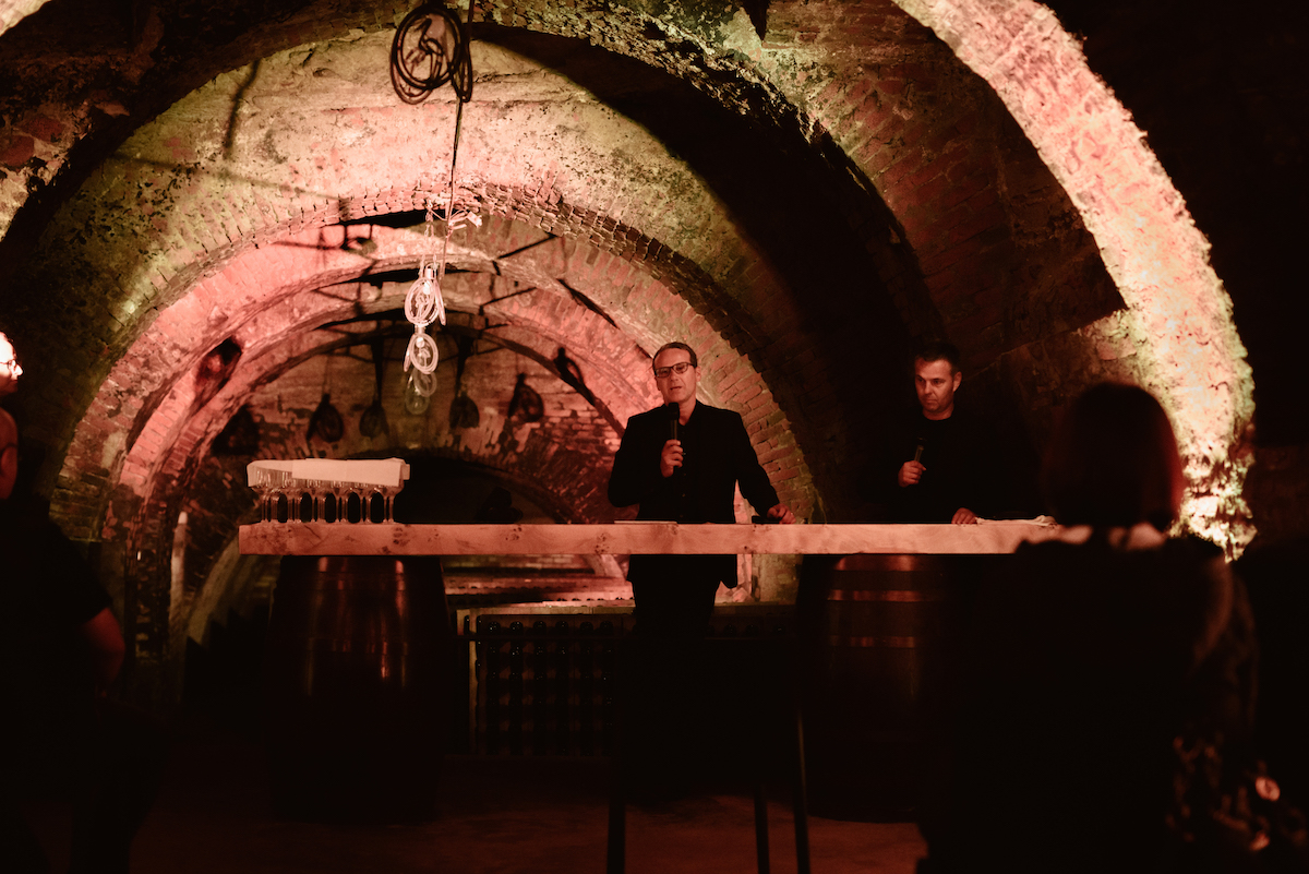 The program kicked-off with the moderator of the event greeting the guests on the spot and online from the Dom Penine’s (The House of Sparkling Wine) garden in Gornja Radgona, a small town on the Mura river, the border of Slovenia and Austria, where the product is made. Then we screened a film about the town so the international guests could get a sense of where we are. After the welcoming speech of RG’s and UBL’s winemaker, there was a live musical performance followed by a film about the creation of the product, all of which was screened to online guests. During the performance and the film screening, the guests who were on the spot moved from the garden inside the cave, the place where the wine ages and the premiere tasting was about to happen. The sommelier had the honour of being the first one in the world to taste and comment on the wine and he invited all guests to do the same. Each online participant received a product sample for tasting prior to the event, and the guests in Radgona were served in complete darkness by the hostesses with night vision goggles. In the final part of the event we organized a Q&A session back in the garden, with the winemaker, RG’s sales representative and the sommelier. The moderator was reading out the questions and comments the online participants have been writing down via Zoom chat and some of them even joined us live via camera.