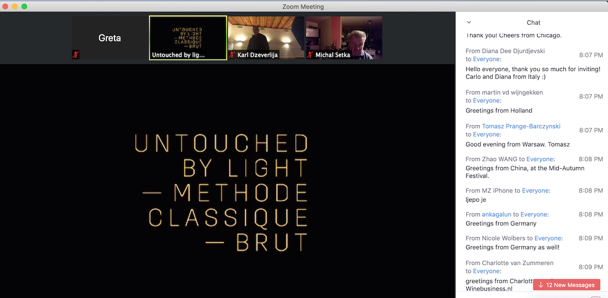 The life of each Untouched by Light sparkling wine is spent entirely in the dark, all the way from the night harvest, to bottle rotation, packaging, transport, sales and up until the tasting. This is why we decided to also do the tasting part of the event in complete darkness of a natural cave, where the wine ages. To transfer the same experience online, our online guests received instructions on how to prepare for the tasting at home. They needed to dim the lights, decrease screen brightness and invite someone they like to share the experience