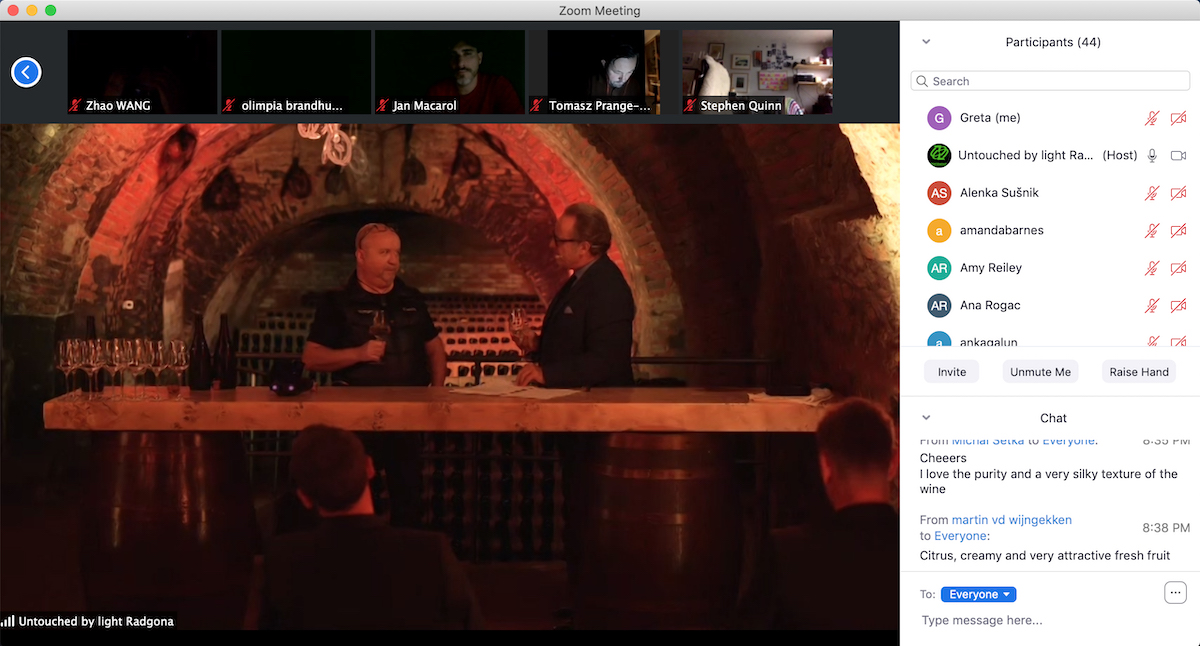 The big lunch event was initially planned to happen in April 2020 during the Glass of Bubbly – London’s biggest annual trade & press tasting. To create a memorable experience, we planned to build a darkroom where a blind sommelier would serve the wine. But then COVID-19 happened so our first challenge was to monitor the pandemic daily and think of a new and flexible launch plan which could be implemented quickly. The pre-launch campaign in 2019 has already created a hype around the product, so our new plan had to also live up to those expectations. End of August we decided to organize the event on October 1 and to invite 100 wine writers and RG’s international distributors to participate online, as well as 30 local ones (maximum allowed) to physically come to Radgona. We needed their RSVP-s ASAP so that the sample packages could get to them on time for the event, weather they lived in California or Hong Kong, and especially because of the air traffic reductions due to COVID. Another challenge was to provide a high-quality sound and vision online signal from the Radgona cave, where the central part of the event happened. But the biggest challenge was to create the Untouched by Light experience as well as a smooth event flow both on the spot and online at the same time and in 10 different time zones.