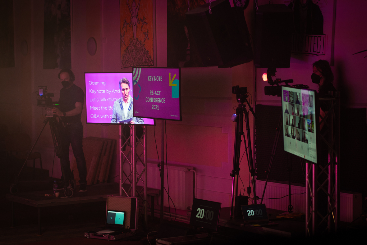 RE-ACT was an internal meeting organized for employees of DT ITSO SK. In turbulent times we experience nowadays, our client recognized the crucial need to keep the staff informed about the company strategy and goals. However, what used to be a series of internal meetings held for several groups was transformed into one unique hybrid event.