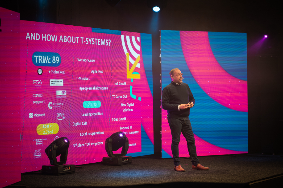 - Having this in mind, the goal for event dramaturgy was to exceed the „regular“ all-staff meeting program by inviting a world-class speaker, subject matter experts from the company, showcasing the company solutions and add value by hosting two talk shows within the event. The variety of conference programs included strategy presentations, keynote speeches, internal case studies, informal q&a with the board of management, a talk show with guest speakers, and three in-depth subject proposals.