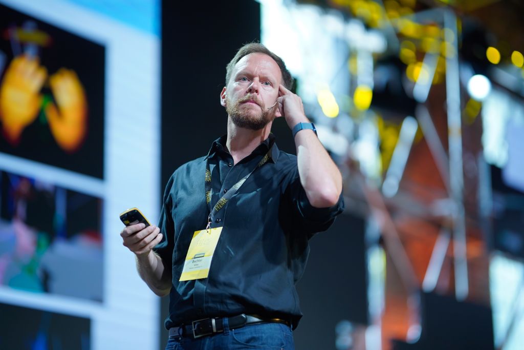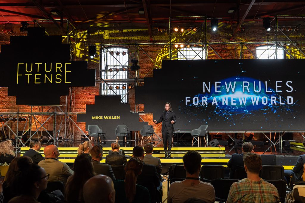 Since Future Tense is the conference about the future, we were trying to apply different innovative solutions in communication and execution. So we focused on digital communication via Go2Digital and social media channels. We created a win-win situation for our Conference, our partners and sponsors by creating short and dynamic online content where representatives of our sponsors communicated the conference and their key messages. At the live stream platform, we had the possibility for sponsors to communicate their messages, have live chats with the viewers and organize small prize games and quizzes. At the venue we had a modern-minimalistic approach, but to create a show, we changed the way speakers were coming to the main stage. Instead of typical entries where the speaker just comes to the stage, we had the camera following the speakers from the backstage, while coming to the stage and guests could see this on the main screen. This created a nice twist and an element of surprise.