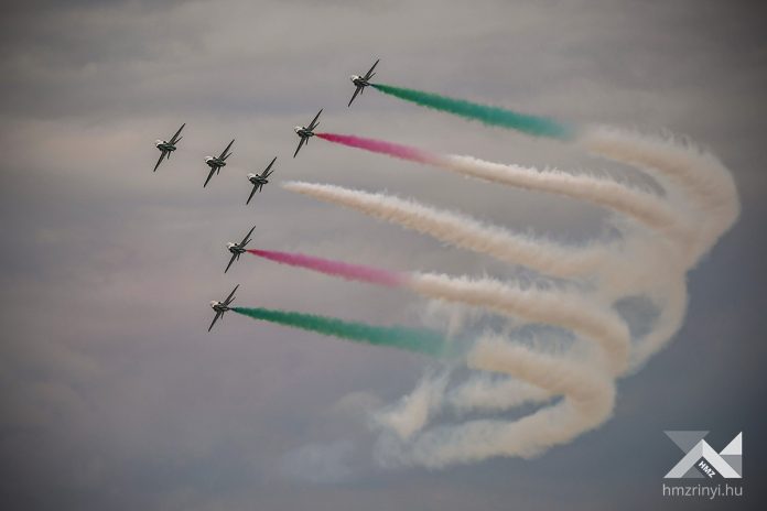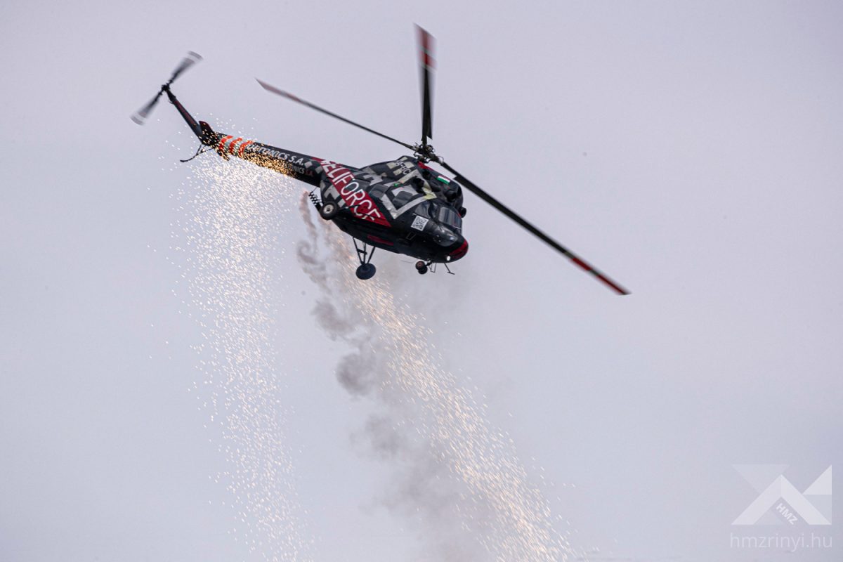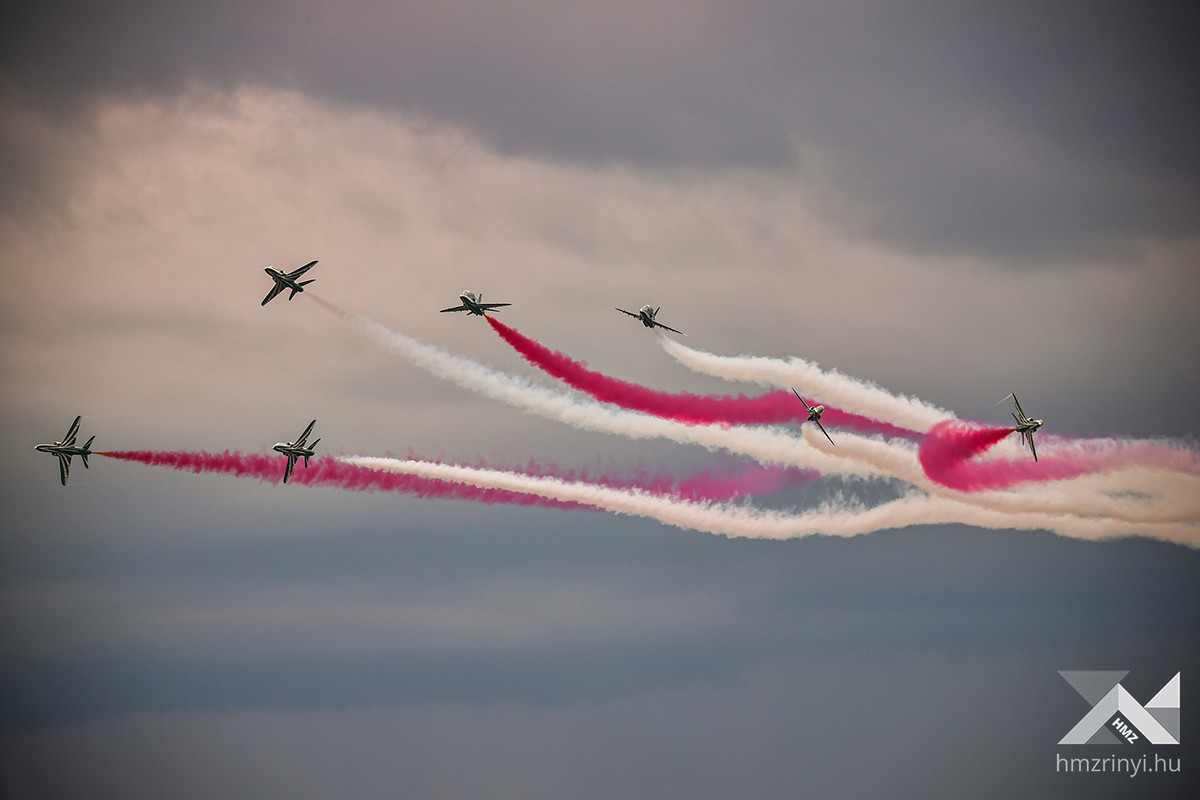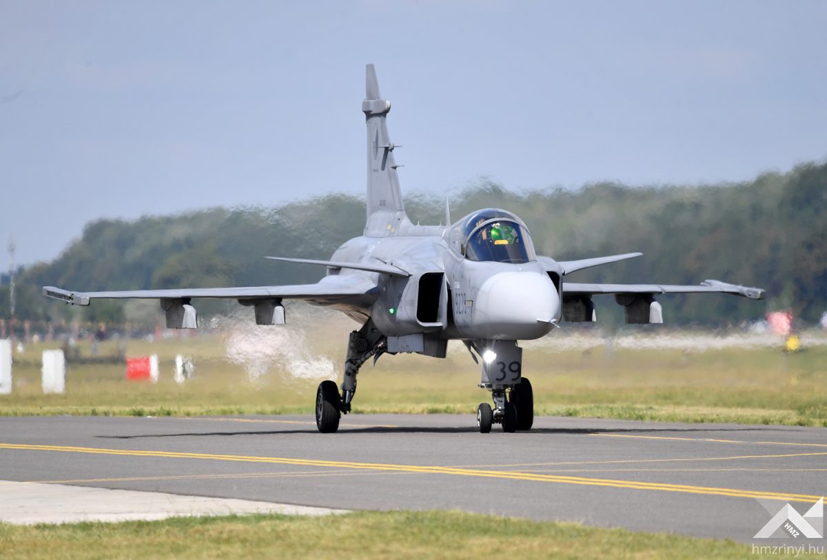 All types of fixed-wing and rotary-wing aircraft of the Hungarian Armed Forces took part in the decorated flight following the opening of the International Aviation Day and Military Technology Exhibition. The passing of helicopters and airplanes was enhanced by the jumps of paratroopers. After that, the Hungarian dynamic program of the flight day continued with the demonstration of the capabilities of the air force. The JAS-39 Gripens of the Puma Squadron demonstrated how to intercept and force an airspace violation machine, which in this case was simulated by a Falcon F-7X, to land.