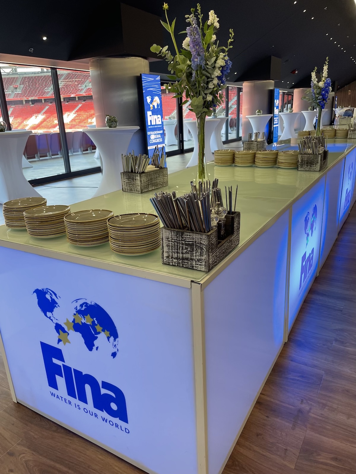 The decoration was solved with colored flower gates, we provided a separate microphone on each table (there was no expectation), and we prepared several menus for the sports leaders coming here from all over the world.