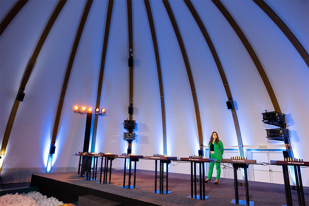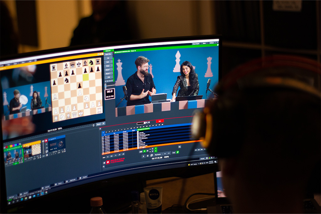 Due to the special location, we set up 2 studios: 1. The entire program control, live stream editing and central streaming were done from Budapest, with 2 international star anchors and nearly 30 of our colleagues who worked on the production. During the show 10 influencers and the Dubai studio joined the live broadcast simultaneously and we also played pre-recorded video material, live stats and replays. 2. Our studio in Dubai was the converted dome of the Hungarian Pavilion, where we built a stage that hosted Judit and the 11 interactive chessboards during the show. Here 10 of our colleagues managed the stream connection with Budapest, organized communication, supervised the technical equipment and chessboards. Prior to the live show, we conducted several tours and technical trials in Dubai. For involving the audience we introduced the World Board which let anybody to join the live game through our uniquely developed gamification platform.