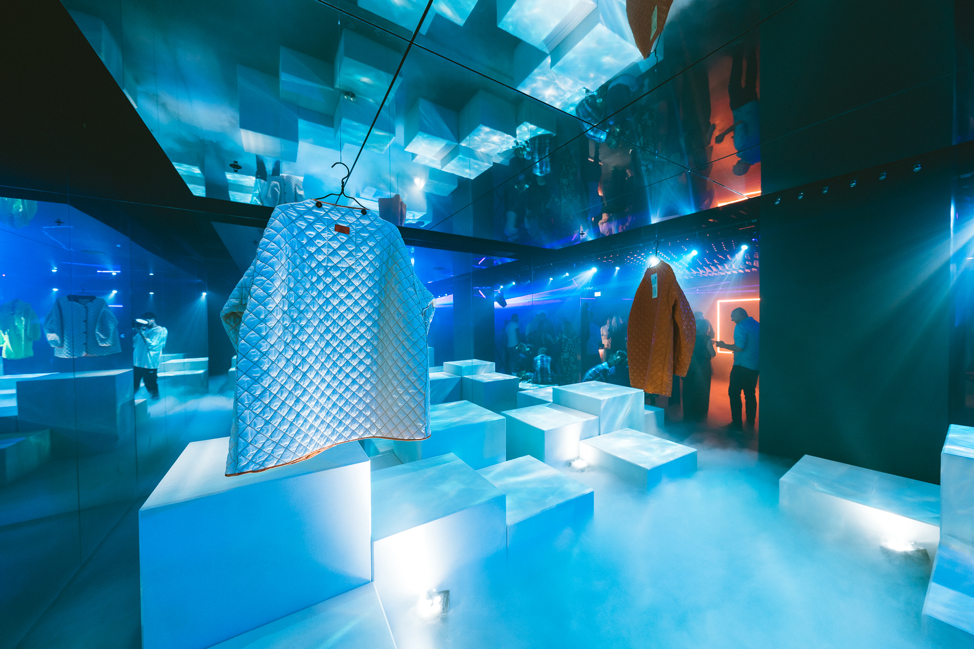 The main challenge of the event was how to develop the fashion piece / the jacket / which all event was built around, which would really change the temperature to the perfect serve temperature.  After this was resolved, they were facing the challenge of finding the right location which they could transform within the budget into an ice cube.