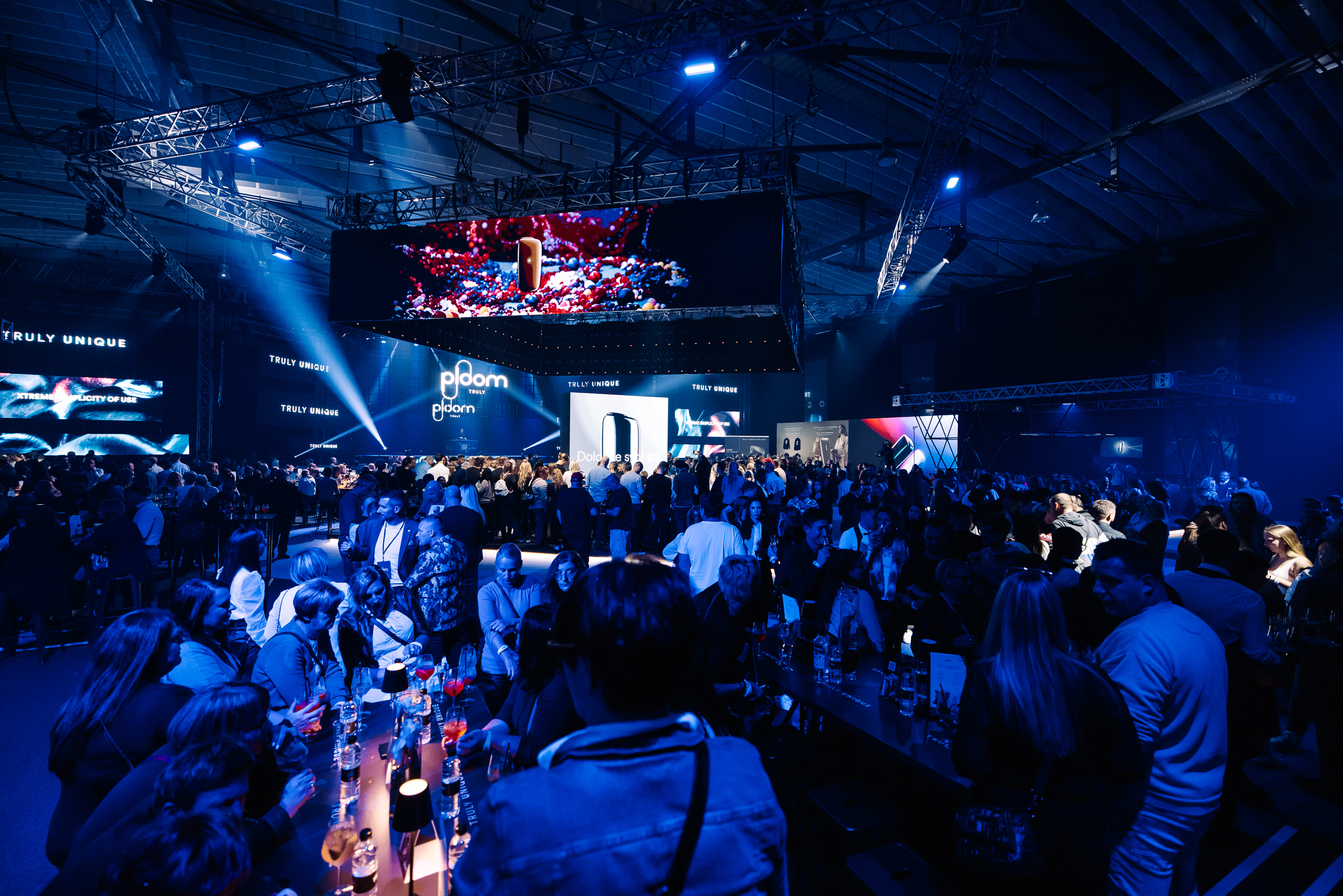 Creativity and innovation were at the heart of Truly Unique Launch. Guests received the Ploom X Advanced device in a personalised activation where they engraved their names on the device and printed unique designs on sweaters and hoodies. They explored the product through interactive installations, including a kinetic showreel controlled by hand movements and a hologram performance that made the giant product literally enter the room. NFC wristbands, which acted as tickets and interactive tools, turned the audience into an integral part of the event experience, creating a visually stunning and engaging environment.