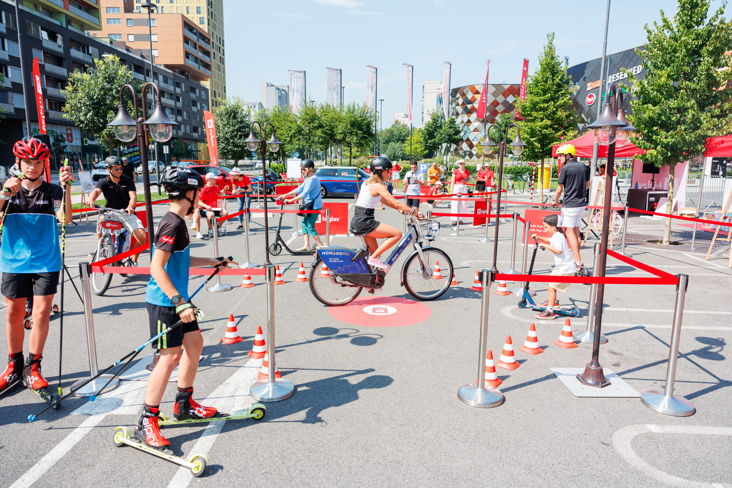 The number of accidents and injuries due to the boom of e-scooters and e-bikes, which can be compared to motorcycle accidents, is increasing dramatically. 50% of injured or dead e-scooter drivers are not wearing a helmet, while excessive speed is the most frequent cause for these accidents. Triglav, the leading insurance company in the region in the field of mobility-related insurances, wished to develop an attractive programme that would promote the reinforcement of skills for a safe cohabitation in common traffic areas through experience/participation. Thus, the Micro-mobility Junction was born in cooperation with Promotiva, a company dedicated to the organisation of complex and innovative event-related solutions. This is the first meeting-place (and not a training range) where users of various speeds and ages and with different limitations can meet to reinforce their traffic cohabitation skills. During the event, participants of different generations can test various means of micro-mobility, including the ones used by disabled people in traffic, which helps them to develop empathy for other users of traffic surfaces. The event is organised in different towns, local communities, and schools.