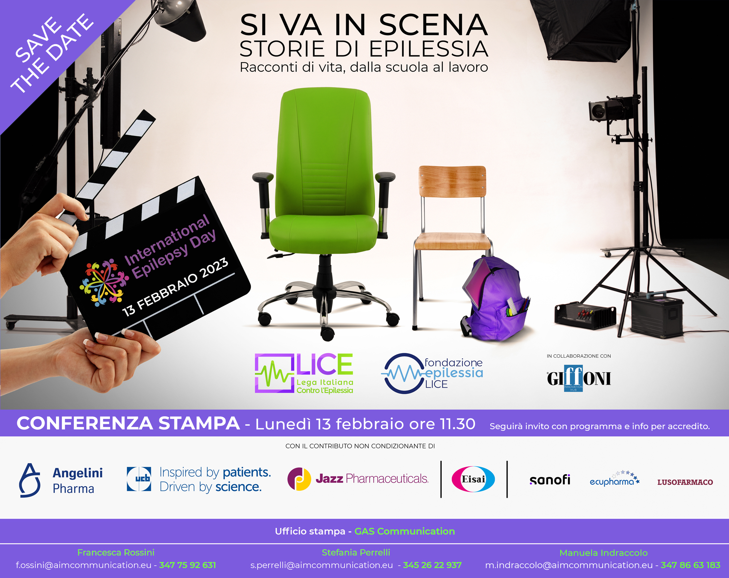 The press event included an ad hoc montage of the film Il Grande Cocomero (The Great Watermelon), one of the few films dealing with epilepsy in the life of a teenager, with a video message from the famous film director, Francesca Archibugi.